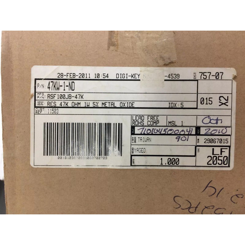 Yageo RSF100JB-47K YAGEO RES 47K OHM 1 W 5% METAL FILM ROHS 40 PIECES
