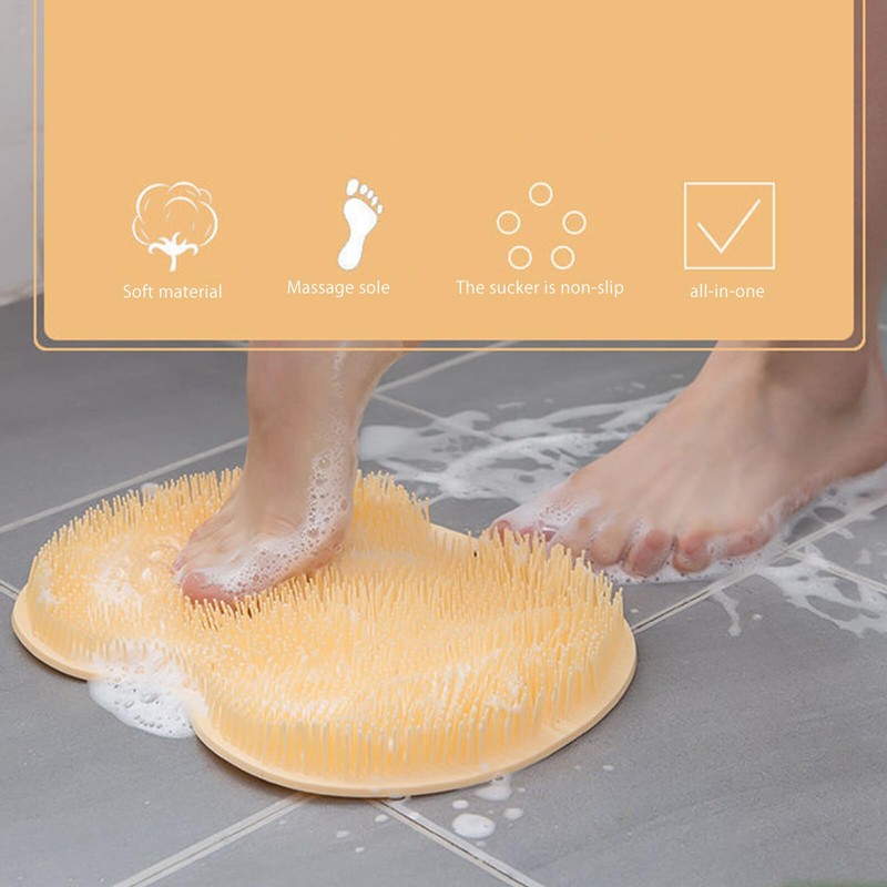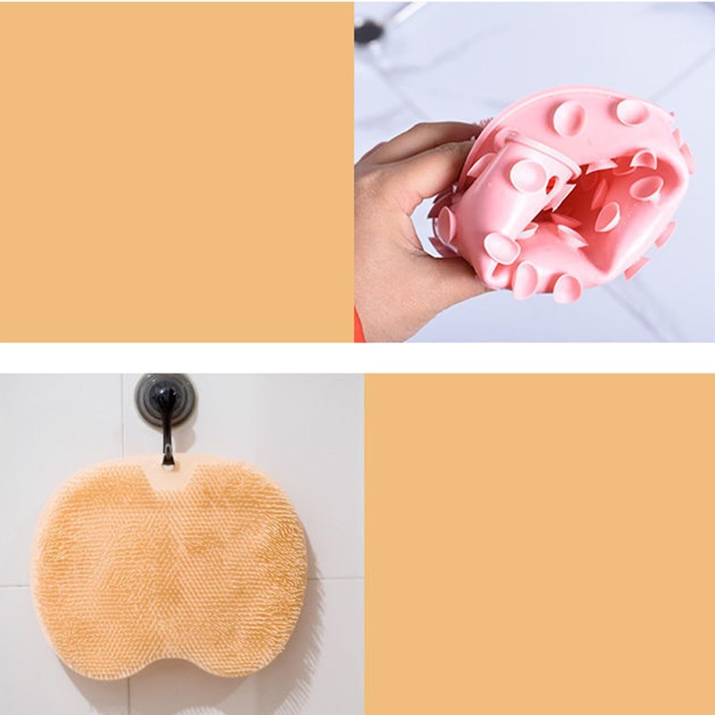 The back of the scrubber has a suction cup to hold it firmly on the shower floor.
