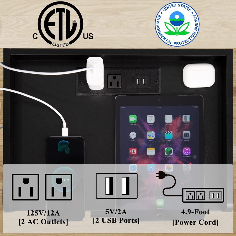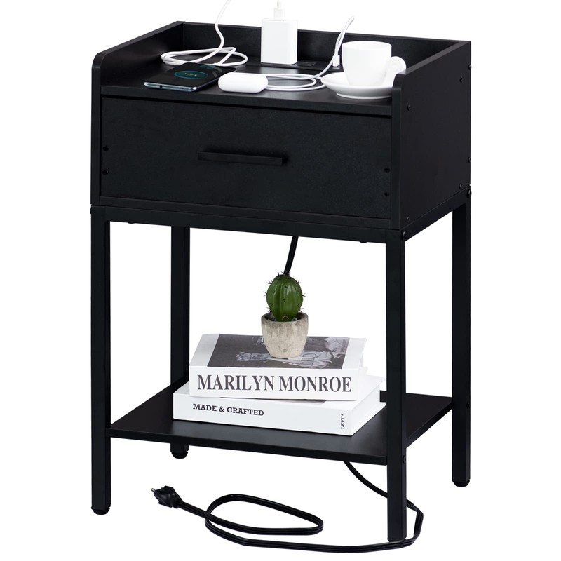 - 【Nightstand with Charging Station】 It is the new generation of night stand with 2 Standard Plug Outlets & 2 USB Ports allows you to charge multiple electronic devices at the same time, such as cell phone, tablet, laptop etc. It makes the power outlet much closer to you and more convenient to use. No matter in the living room or bedroom, it will does an outstanding job. It's first mission is to save your time and make home life more comfortable.
