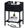 YAHARBO Nightstand with Charging Station and USB Ports, 3-Tier End Side Table with Storage Drawer and Shelf, Bedside Night Stand for Bedroom- Black