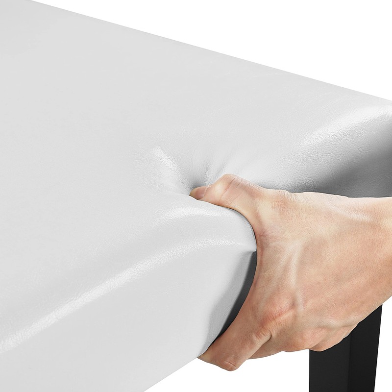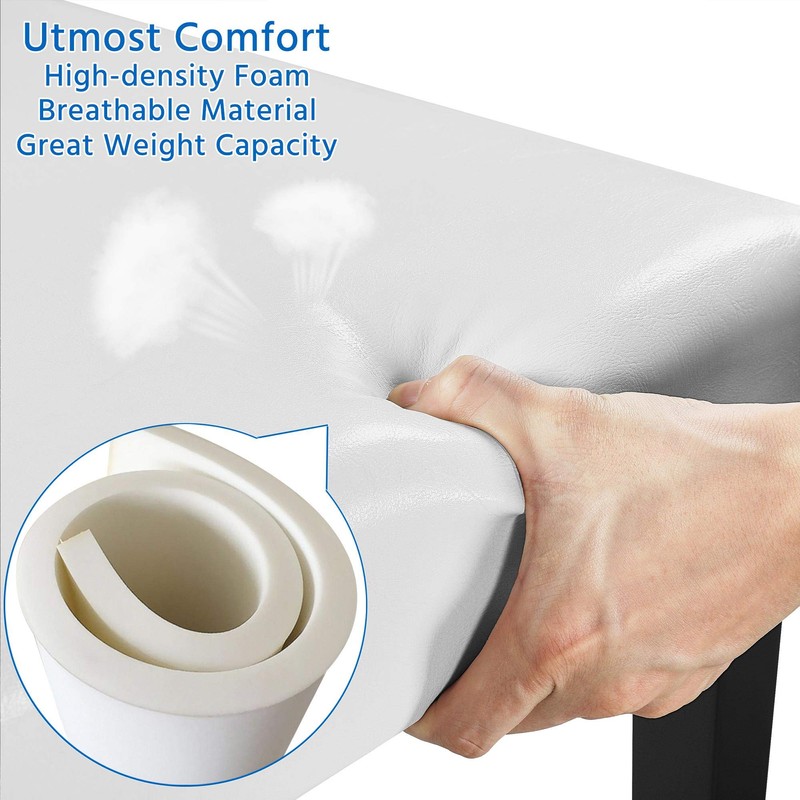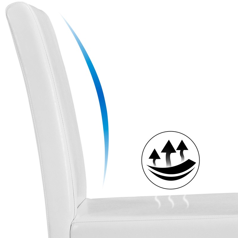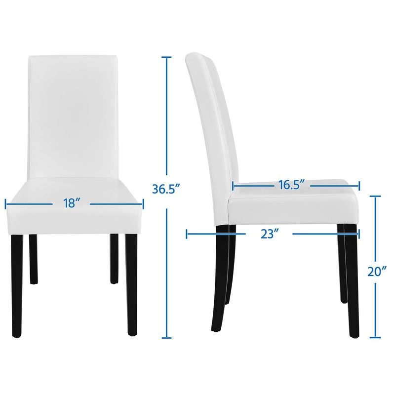 - Specifications: Quantity: 4; Color: White; Materials: PVC Leather, Solid Wood, Composite Board, Foam, Rubberwood; Assembled Dimensions: 18″ W × 22.5″ D × 36.5″ H; Seat Width: 18″; Seat Depth: 16.5″; Maximum Weight Capacity (per dining chair): 300 lb