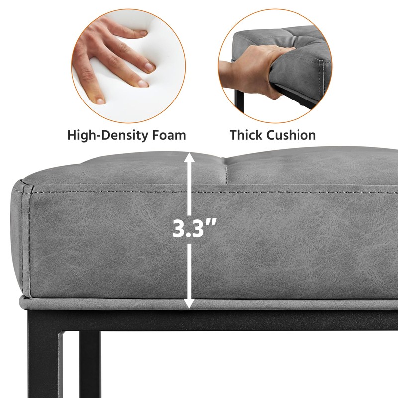 - Thick Cushion: Upholstered with a 3.3″ thick cushion, this pair of industrial bar stools are comfortable and soft, which can bring you a cozy sitting experience