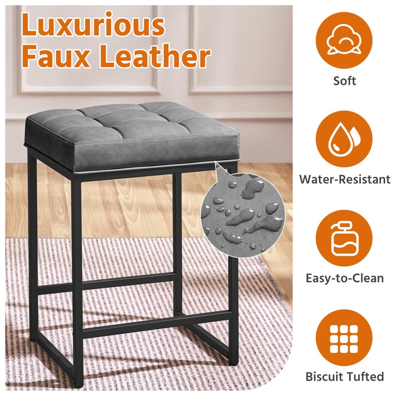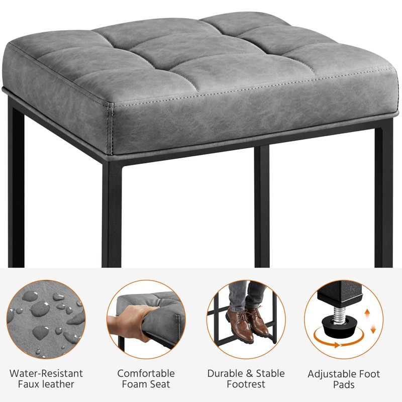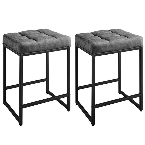 Yaheetech Bar Stools Set of 2, 24 Inch Counter Height Bar Stools Set, Backless Kitchen Island Stools, Faux Leather Stools for Kitchen Counter, Grey
