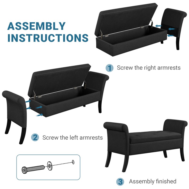 - Simple & Stylish: The harmonious combination of fabric and pine wood delivers a chill and soft vibe to your place. The vintage armrests make this ottoman bench even more elegant. Along with classic color options, this tufted storage bench can easily integrate into different decoration styles