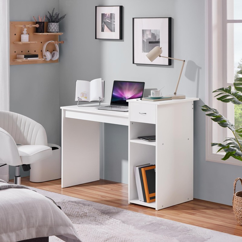 Yaheetech Home Office Computer Desk with Storage Drawer & Monitor Shelf, Writing PC Laptop Table Desk Study Workstation Furniture for Small Spaces, White