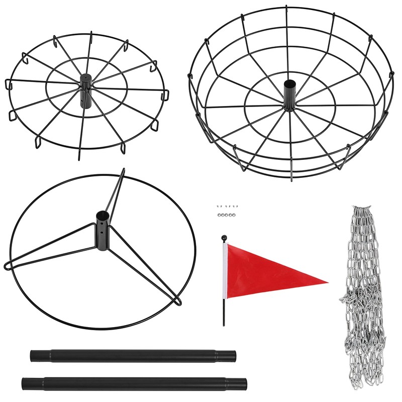 • Specifications: Color: Black; Chain Quantity: 12; Material: Steel; Assembled Dimensions (flag not included): 25.2 L  25.2 W  52.8 H; Basket: 25.2 Dia.  6.8 D