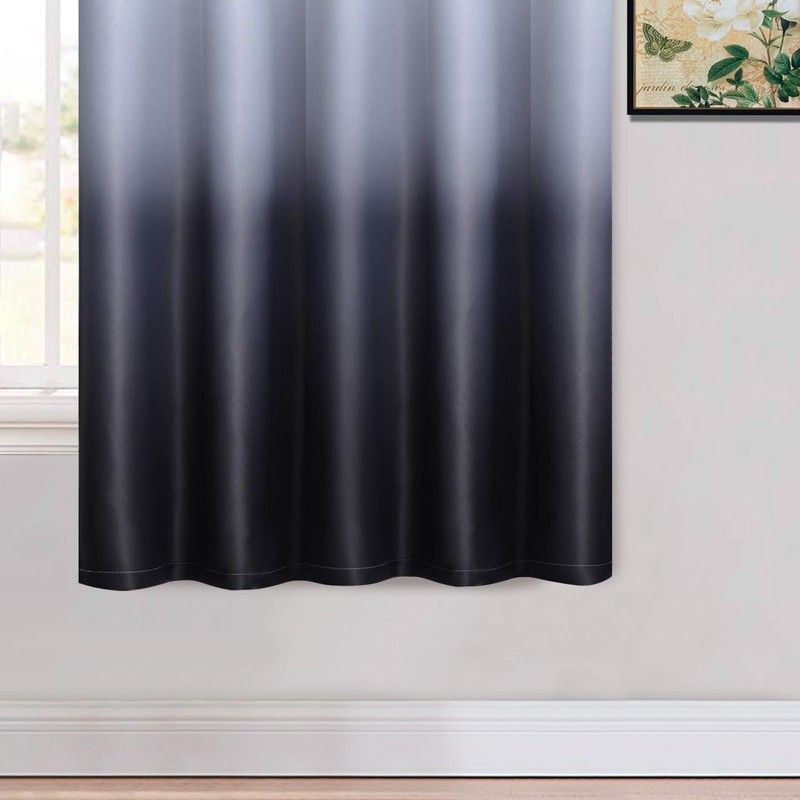 Yakamok 63 Inch Long Ombre Curtains,Thermal Insulated Light Blocking Greyish White to Black Gradient Color Curtains, Room Darkening Grommet Window Drapes for Living Room/Bedroom(2 Panels,62W x 63L)