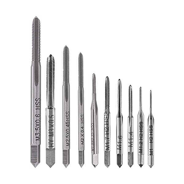 - 10 Different Sizes: M1, M1.2, M1.4, M1.6, M1.7, M1.8, M2, M2.5, M3, M3.5 (coarse thread) for tapping various threads.