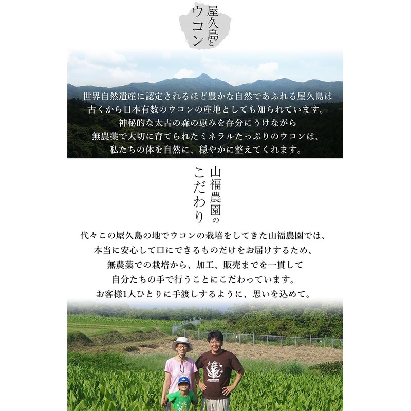 - ✅ [Receive the power of Yakushima's great nature] Yakushima, the home of the turmeric we deliver, is filled with lush forests that are certified as a World Heritage Site. The mysterious ancient forests covered with moss store and purify water, and carry the pure water to the village. Turmeric grown in such a rich natural environment contains plenty of minerals and gently regulates our bodies.