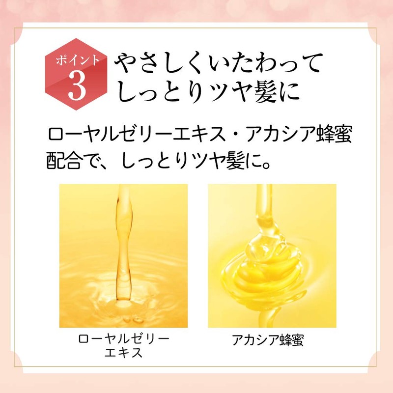 • Formulated with royal jelly extract and honey to promote a moist and glossy hair