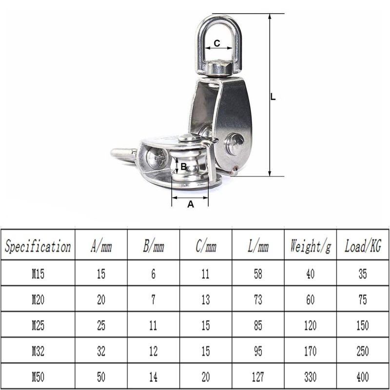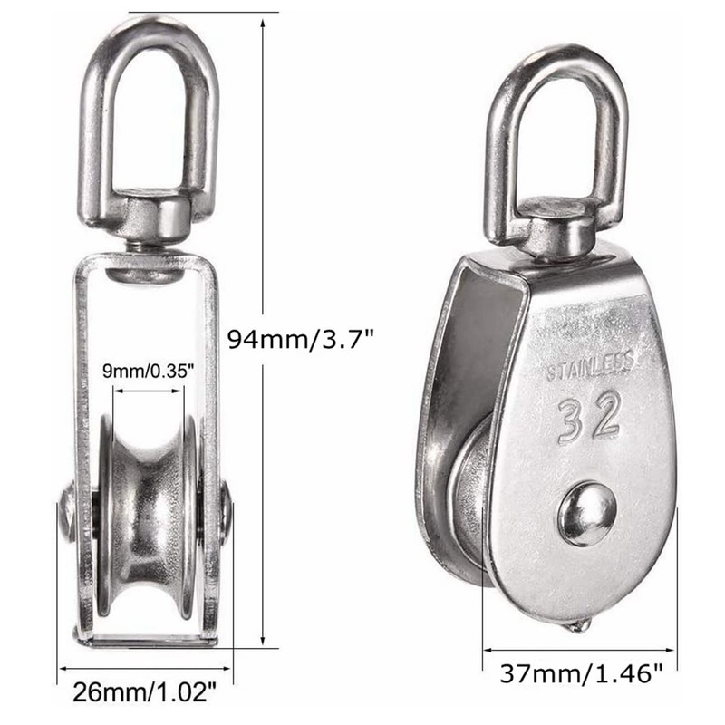 - 【Each package includes】6 x M32 Stainless Single Pulley Block.