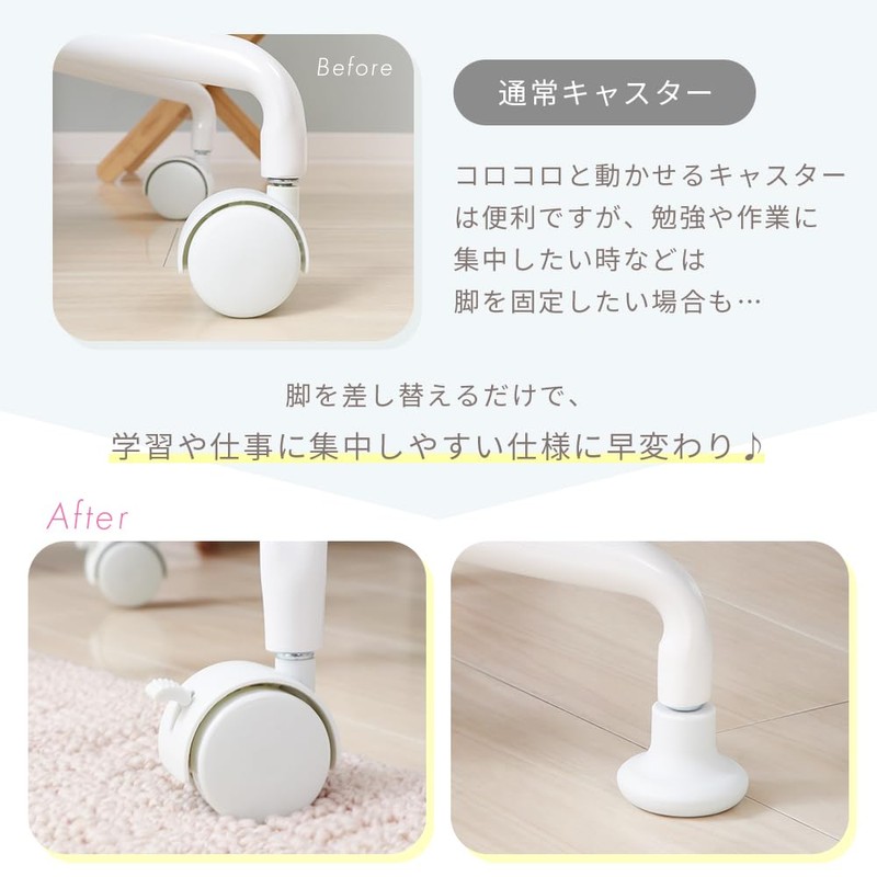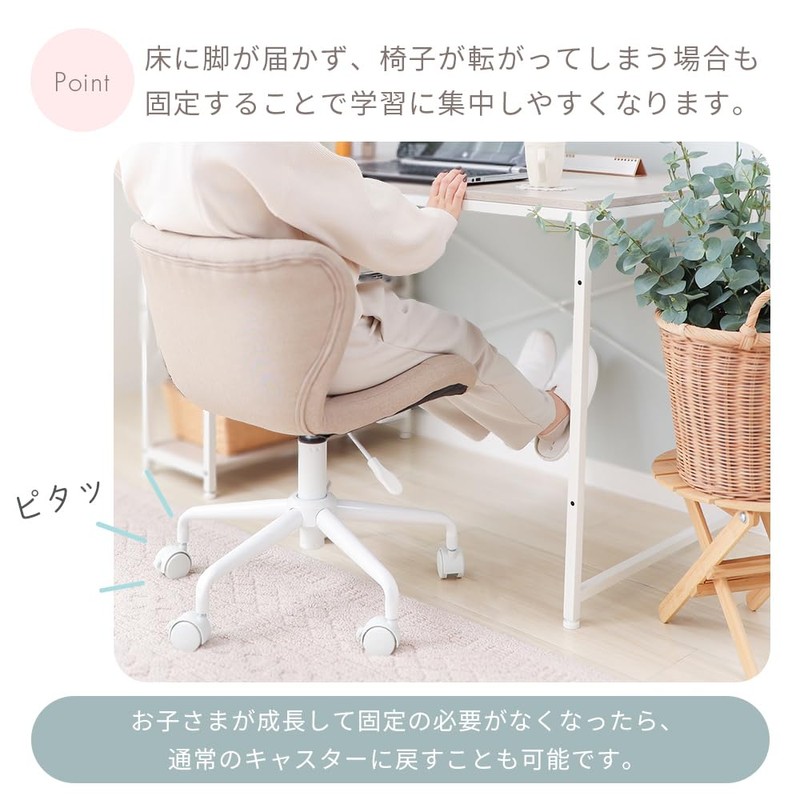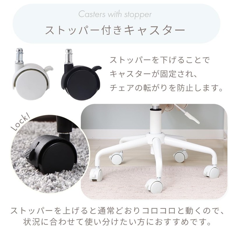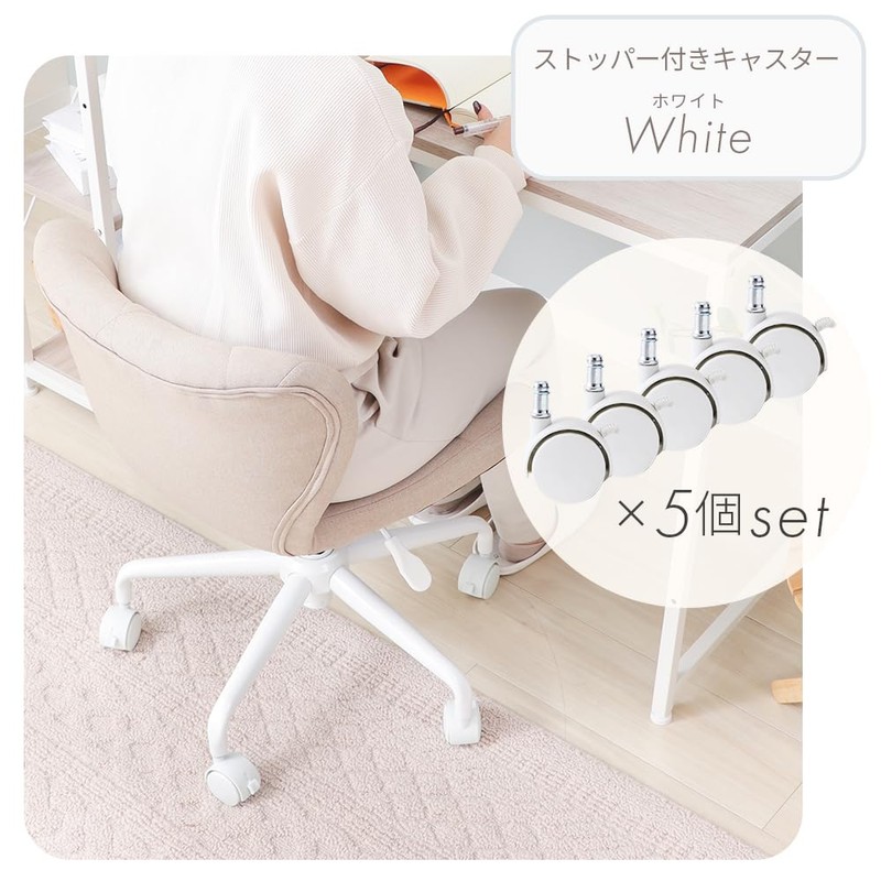Yamasolo Desk Chair with Stopper, Computer Chair, OA Chair, Replacement, Lock, Fixed, Study, Learning (White Casters))