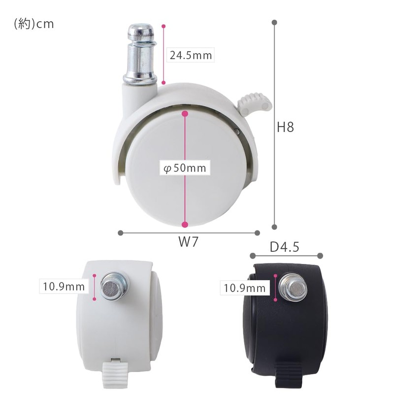 • [Size] (Caster with Stopper) Approx. Width 2.8 x Depth 1.8 x Height 3.1 inches (7.0 x 4.5 x 8.0 cm), Insert Diameter Approx. 0.4 inches (10.09 mm)