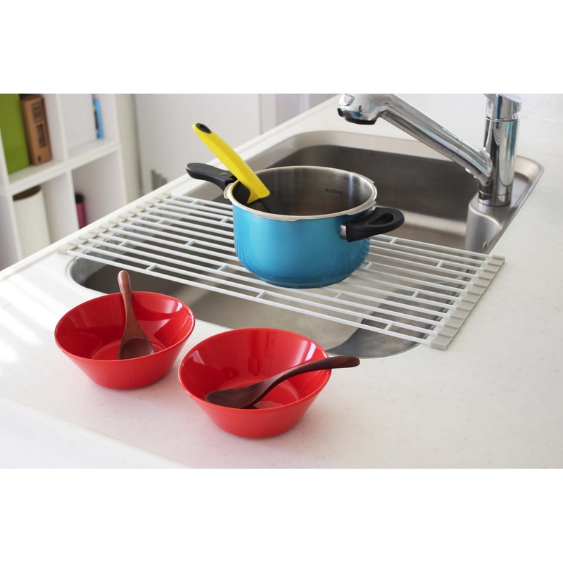 - FOLDABLE: This folding sink drainer rack is easy to roll up when not in use to clear up the kitchen sink and counter space.
