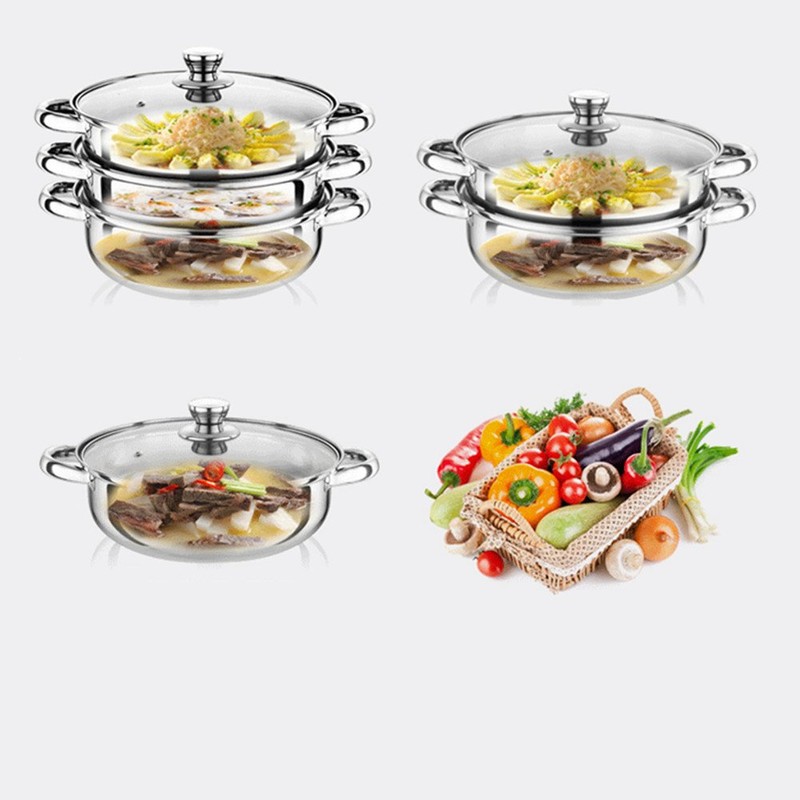 Yamde 2 Piece Stainless Steel Stack and Steam Pot Set - and Lid,Steamer Saucepot double boiler…