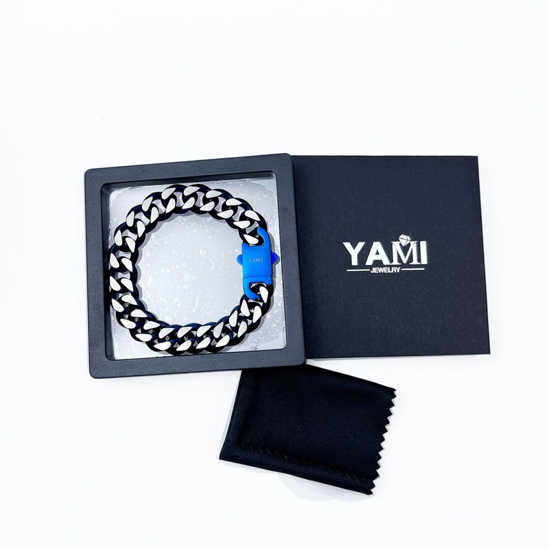 YAMI Bracelets for Men, Cuban Link Titanium Steel Bracelet Mens Jewelry Cool Stuff for Men, Gifts for Boyfriend/Husband on Anniversary/Birthday, 7.5 Inch Blue