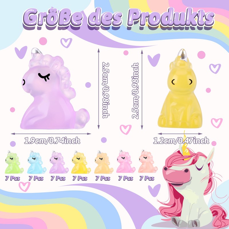 - Unique luminosity, infinite charm: the condition for the glow is that it must be illuminated with light for a certain period of time and then placed in the dark to achieve a luminous effect. Each mini unicorn figure has a luminous function that glows enchantingly in the dark and creates a mysterious and wonderful atmosphere.