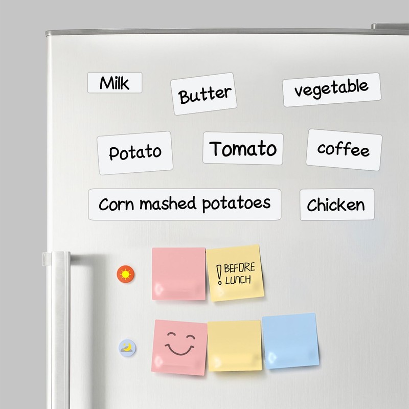 - Dry erase magnetic labels are versatile and perfect for sticking to metal and magnetic surfaces, can be used as refrigerator magnets, photo magnets, warehouse shelf labels, name magnets, magnetic whiteboard labels etc.
