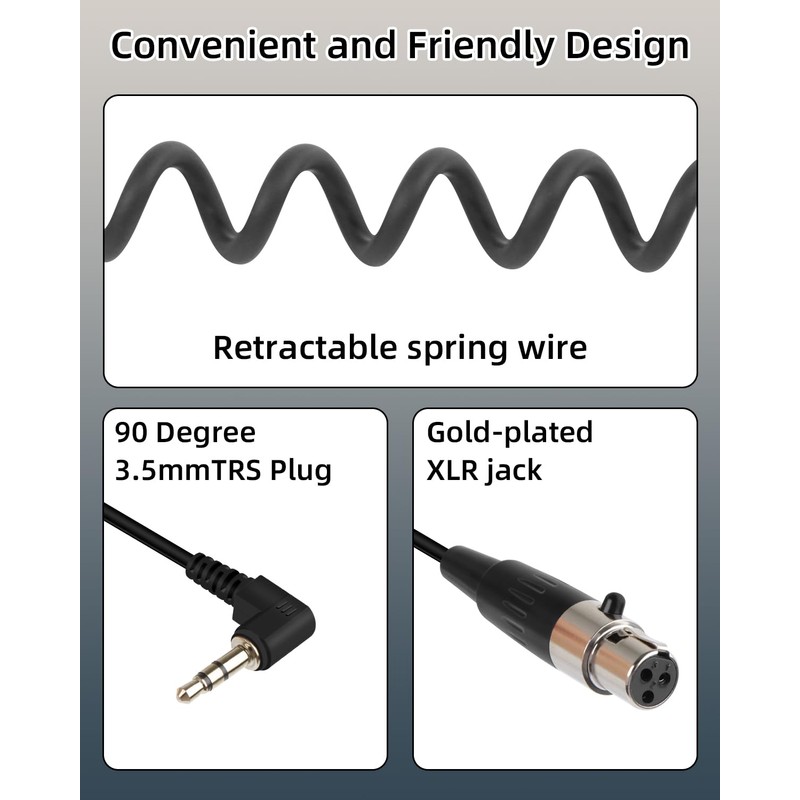 - 3.5mm to mini XLR coiled high-efficiency crimping design:XLR to 3.5mm audio coiled cable adopts stretchable spring wire,original length: 0.3M/1Ft, stretching length: 0.5M/1.64Ft, easy to carry, fast rebound, no winding, bid farewell to the trouble of messy tearing