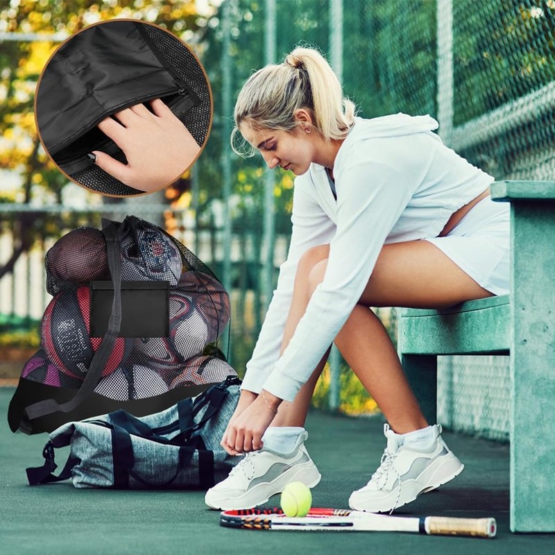 - 【Durable Material for Durability】: Made of durable 600D polyester and elastic nylon net, the ball net is breathable and extra durable. The material allows air circulation, prevents odours and makes it easy to pack and unpack.