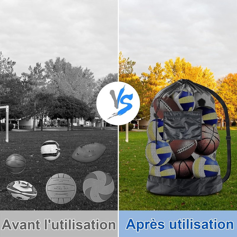 - 【EXTRA LARGE MESH BAG】: You will receive an extra large mesh bag measuring 24" x 36" which can hold up to 10 footballs (size 5), 12 volleyballs or 8 basketballs (official size) - ideal for versatile sports supplies.
