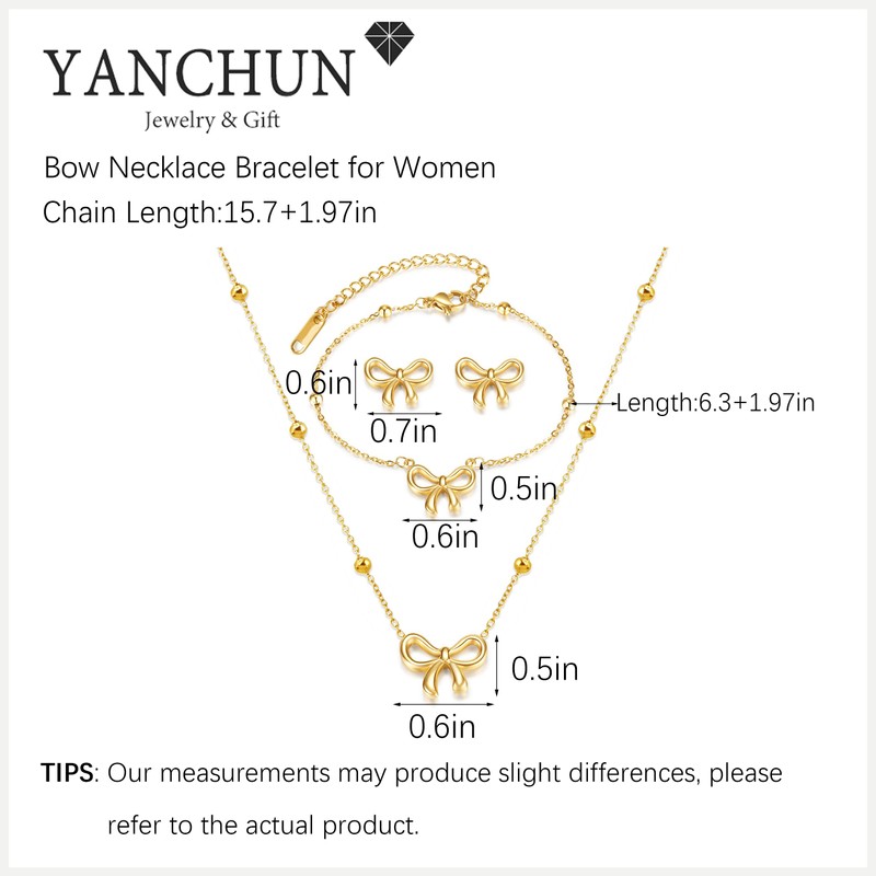 - GOLD BOW BRACELET:Add a sophisticated touch to your outfit with this elegant gold bow bracelet, necklace, and earring set.