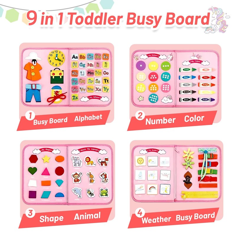 - 【15-in-1 Montessori Spielzeug】Unser Montessori-Busyboard kombiniert über 15 spielerische Aktivitäten wie Schnürsenkel binden, Reißverschlüsse, Knöpfe, Uhren, Kalender, Tierpuzzles, Klettbuchstaben und -zahlen. Es fördert Feinmotorik, Logik und Kognition – ideal für Kinder ab 1, 2, 3, 4 Jahren!