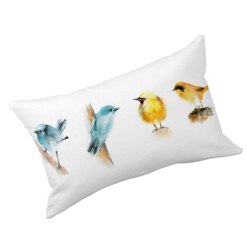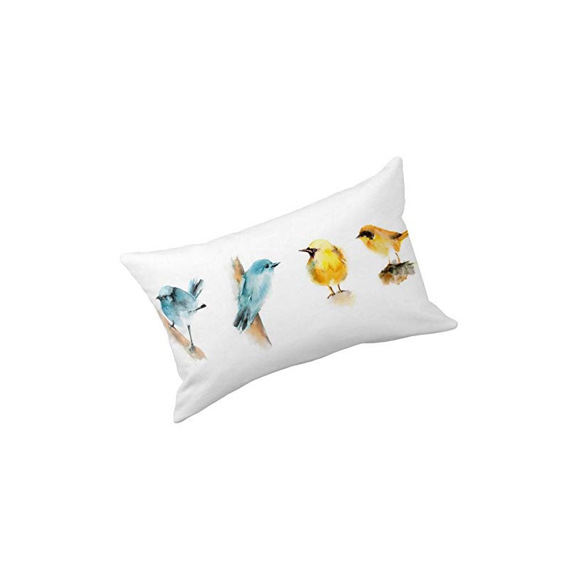 YANGYULU Rustic Forest Wildlife Blue Yellow Birds Sitting on The Tree Branches Super Soft Throw Pillow Case Rectangle Cushion Cover 12x20 inches Decorative Couch Room (Robins-4)