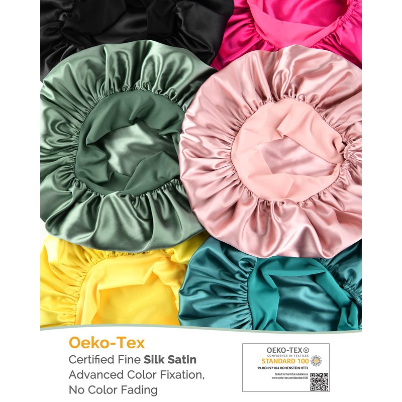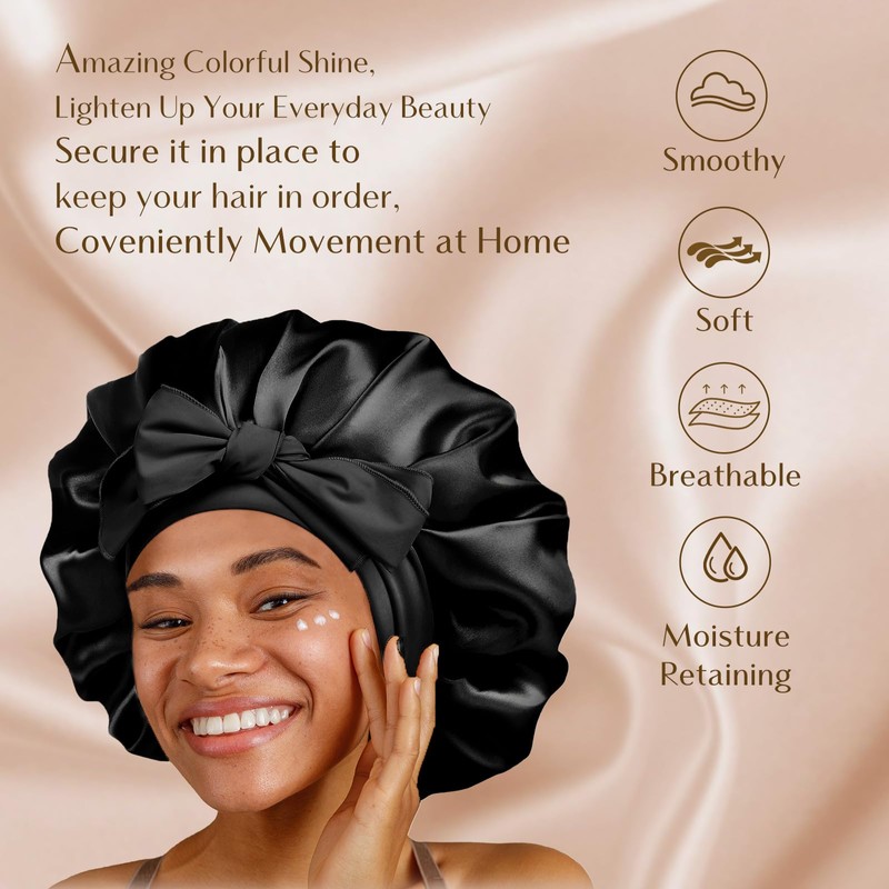 - Bonnet always disappear while opening your eyes? Here come a non-slip Bonnet to solve this headache problem, this satin Bonnets featured with stretchy long band, wide soft, high elastic and skin friendly, you can wrap on head, adjust tightness and then tie to fix Bonnet on head, which can stay on over night, prevent hair from messy, well protect your hair.