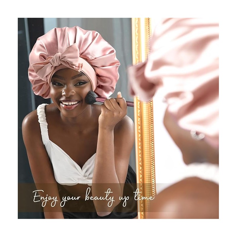 - Quality material: Bonnet part is made of good texture pink silky satin, which is breathable and smoothy, and can keep hair moisture too. Long band is made of stretchy spandex material, comparing common elastic band Bonnet, this Bonnet wouldnot make you feel tight and leave imprint on head, and much more cosy.