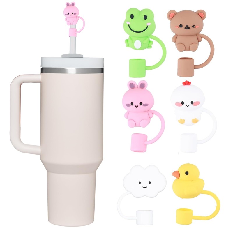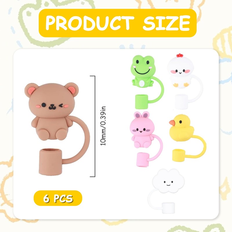 YANINEE 6 Stück Silikon Strohhalm Abdeckung Deckelschutz Einfache Moderne Strohhalm Topper Tiere für Dekor 10mm Strohhalme (Viele Farben)