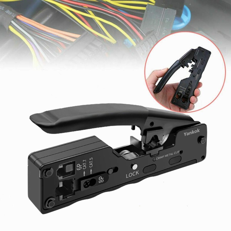 **Volume Pricing:** We accept both retail and wholesale orders. PM us for bulk discounts and shipping details if in need. **What’s in the Package?** 1x CAT5 CAT6 CAT7 Modular Crimper 1x Screwdriver 1x Cable Stripper 1x Tool Carry Pouch 3x Network Connectors for Testing **Product Features:** 2/3 the size of traditional crimpers. Come with screwdriver and cable stripper. Come with a tool carry pouch for easy storage. Crimps standard and shielded RJ45 connector and standard RJ12 RJ11 plugs. Crimping dies are precision ground from high-carbon steel, sturdy yet compact. **NOTE:** Not for use on AMP/TYCO style plugs and does NOT crimp pass through connectors. **Materials:** Spring Material: S80C Blade Material: SK5 Handle Material: PVC dip process **About Yankok:** Yankok offers a comprehensive line of VDV products created to prep, connect, and test network, phone, CATV, home theater, satellite, and security cables for residential or commercial systems. Yankok has manufactured premium-quality, professional-grade hand tools that deliver the performance, durability and precision needed to get the job done right. We only use the high-quality materials, superior workmanship, and keeping manufacturing as close to home as we can and make great products that stand up to the demands of the professionals who use them every day. For every tool, item box and shipping package should be a Yankok logo mark on it for genuine certification.