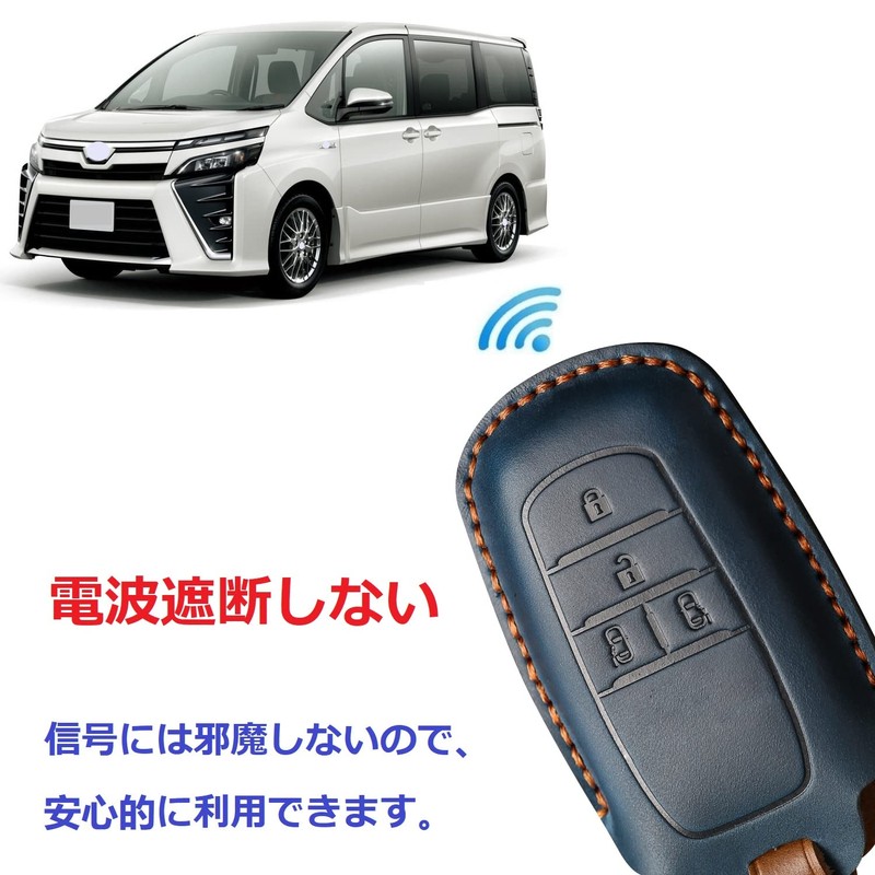 YANMW New Voxy 90 Series Key Case Compatible Toyota NOAH VOXY Leather Key Holder Noah 90 Series Key Cover Genuine Leather (Blue)