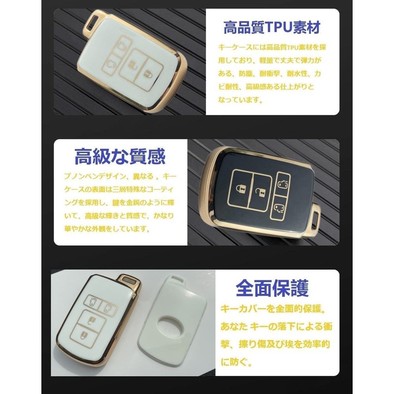 [YANMW] Noah 80 Series Key Case Voxy 80 Series Key Cover Compatible Toyota Sienta Alphard Vellfire 30 Series Smart Key Case (Glitter, White), gold white