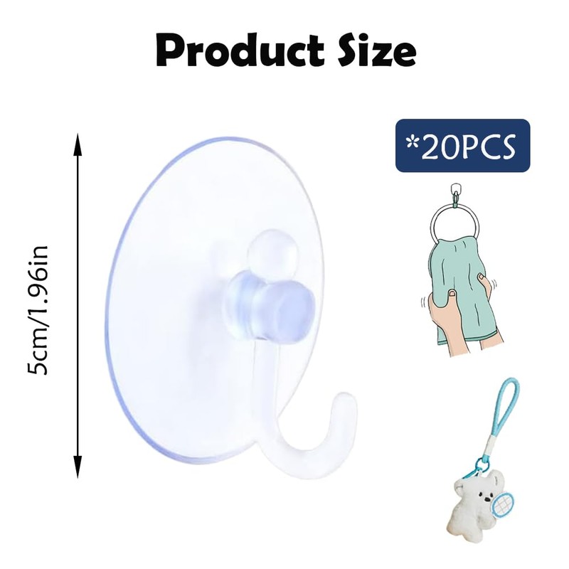 - Packing content: You will receive 20 pieces transparent suction hooks, they are enough for you everyday using.