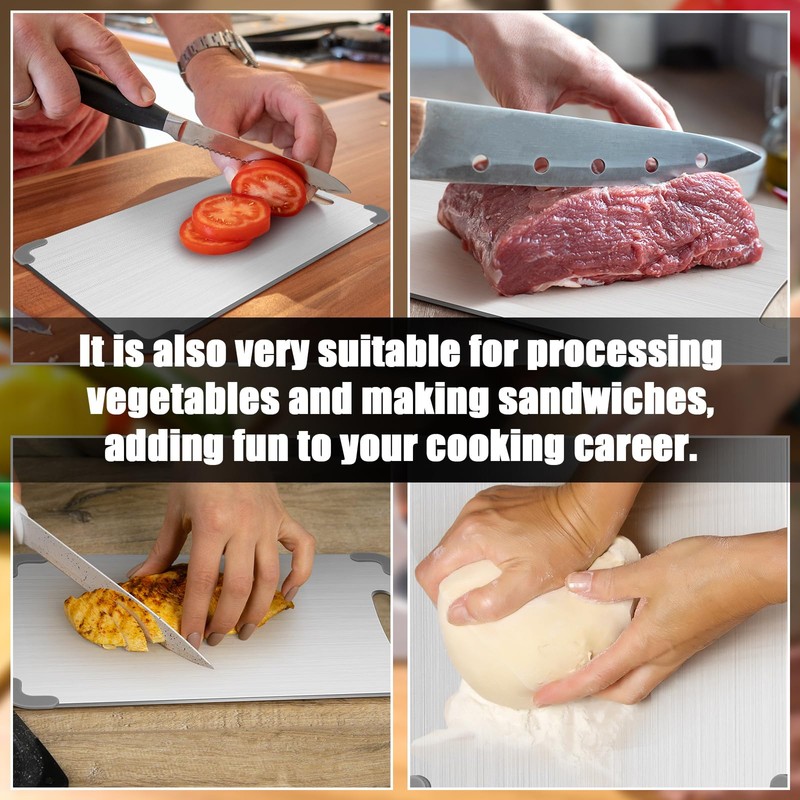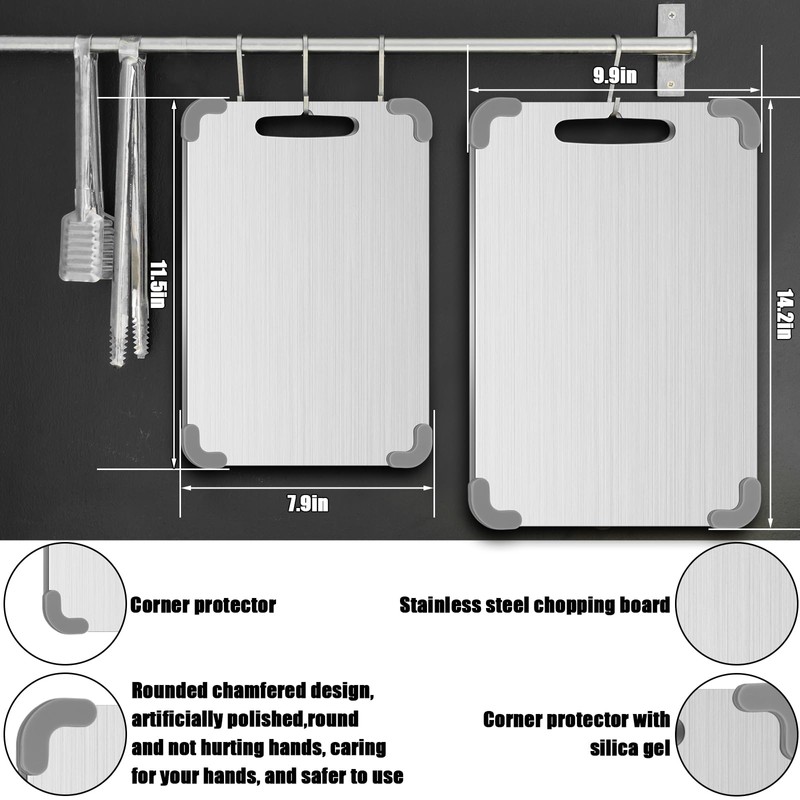 - 2025 Upgraded Design: our 304 stainless steel cutting boards feature a thickened 0.06-inch design with added Guard Belt Angles on all four sides, eliminating common flaws of traditional cutting boards; This innovative design ensures durability, safety, and ease of use, making it a must-have for any kitchen