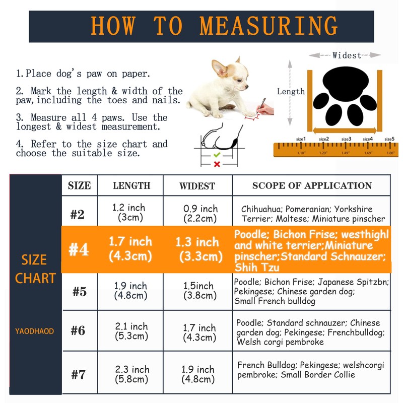 - Paw Protector Dog Booties : The flexible sole is made of the hard non-slip sole. It has a good anti-slip effect and can provide traction to protect the dog's claws from the road, grass and tiles. deck, boat, winter salt, snow, ice, indoor hardwood floors and other surface injuries,and keep the cute dog clean.