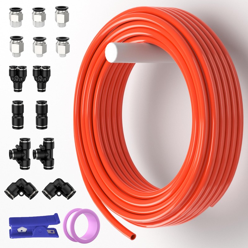 YAOJING Orange 4mm Air Line Industrial PU Trachea Air Intake Hose Line Kit Fitting Tools - 10M/32.8Ft Chew-Resistant Hose for Farmland Drip Systems