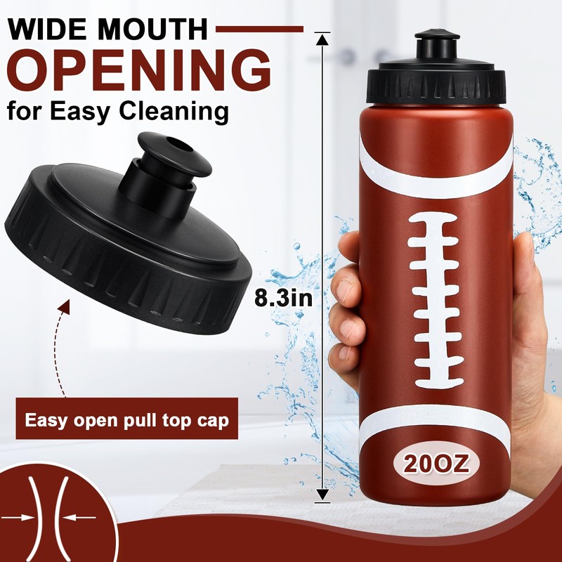- Innovative Sports Theme Design: these sports bottles adopt football theme design, never lose style even when hydrating; The pull top cap feature also provides a practical, fuss free way to quench your thirst during your active moments