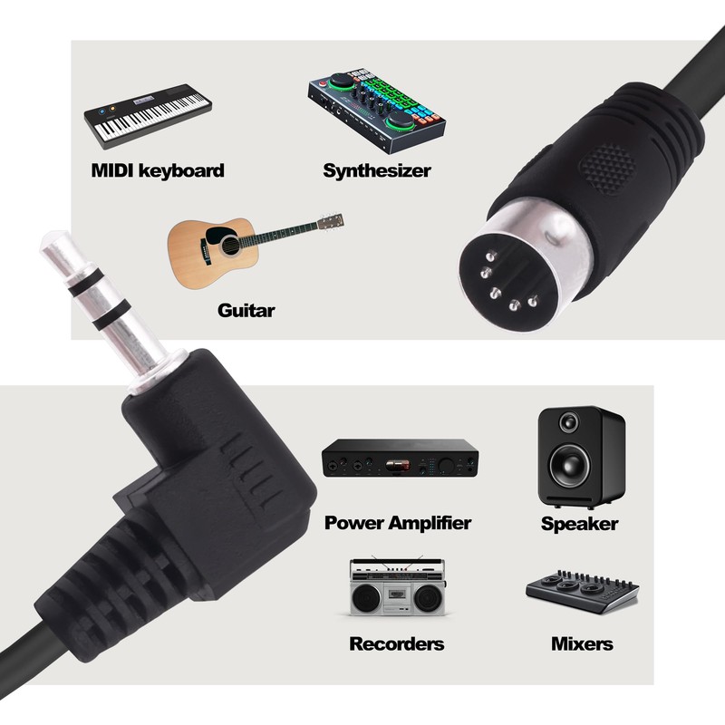 - 90 Degree Right Angle Design Style, This 3.5mm to MIDI Din 5Pin cables can be easily connected to the back of the device, effectively reducing connection pressure and improving cable lifespan.