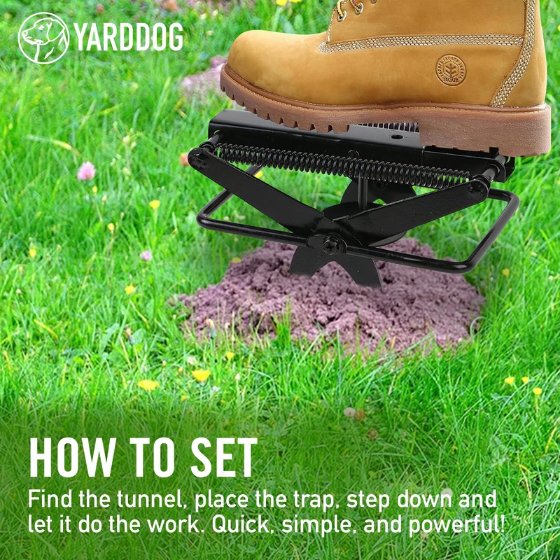 - HOW TO USE THE MOLE TRAP: Setting up the YARDDOG mole trap is simple and quick, with no complicated setup needed. Just step on the trap to activate it, and place it in high-traffic mole areas for optimal results. Ideal for yards, gardens, and other outdoor spaces, it is an ideal choice for any homeowner looking for a straightforward, efficient mole exterminator.