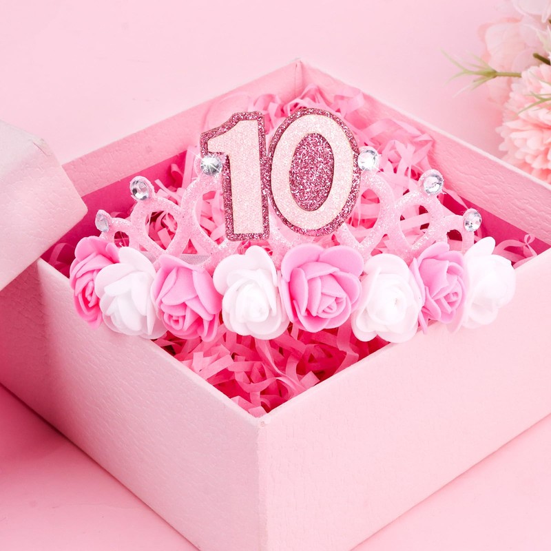 YARIEW 10th Birthday Decorations for Girls, 10th Birthday Headband, Pink Headband Bithday Crown Flower Princess Crown Outfit Princess Party Decorations
