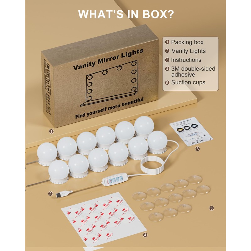 - 【3 Color Temperatures Adjustable】 Press the button briefly to choose your preferred color temperature: Warm White (3000K), Cool White (4000K), or Daylight (6500K). Whether you're in the dressing room, bathroom, or celebrating holidays, parties, or special events, select a cozy light to cater to your needs for various scenarios. Customize the lighting colors effortlessly to create the ideal ambiance for any occasion!