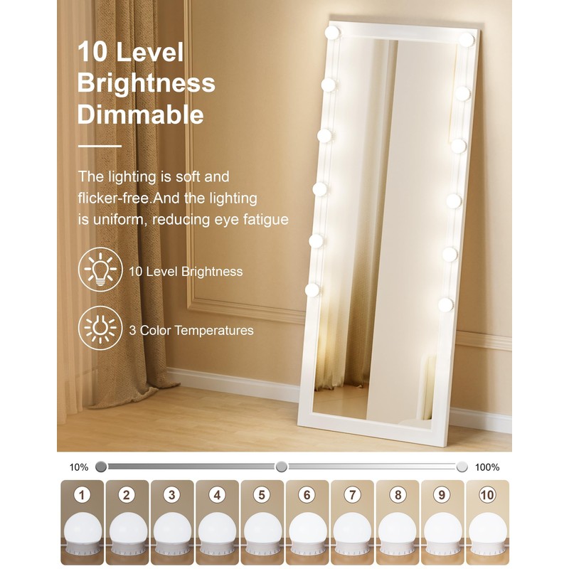 Yarnock 12 Bulbs LED Vanity Lights for Mirror, 3000K 4000K 6500K & 10-Brightness, Wire Length Adjustable, USB Cable, Hollywood Mirror Lights for Makeup Dressing Room Bathroom, White