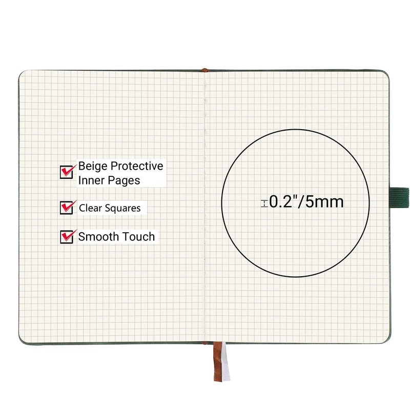 - Thick 100GSM Paper--- Inner pages are made from 5x5mm squares of premium 100GSM paper, thick but soft, with no bleeding or ink penetration. The creamy white paper protects your eyes and provides a long-lasting writing experience.