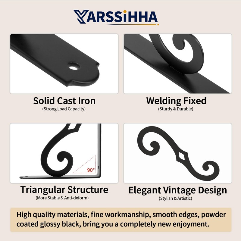 - Advantage & Feature: Adopting fine cast iron materials, combining integral casting process, the shelf support has excellent bearing capacity. Vintage slant support is welded and fixed, right triangle structure increases stability and will not deform easily. Powder coated glossy black surface brings you a completely new enjoyment, it is fine workmanship with smooth edges, never hurt your hands, durable and has long service life