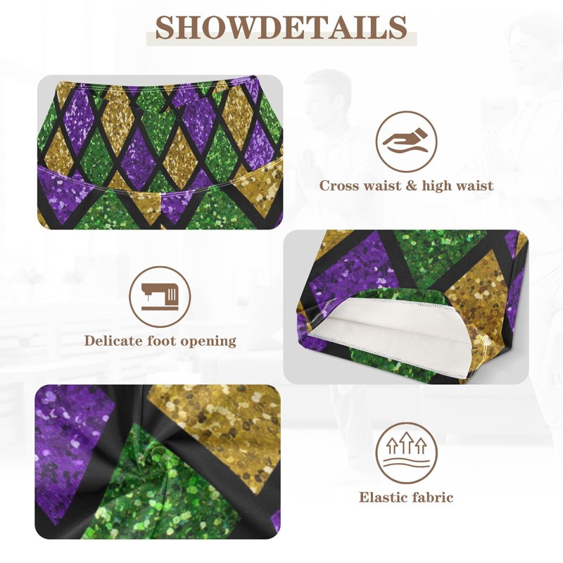 Yasala Mardi Gras Cross Waist Flare Gym Leggings for Women Fleur De Lis Glitter Zigzag Pilates Dance Pants Lightweight Bottoms Bootcut Wide Leg Fat Tuesday Fashion Trousers, L