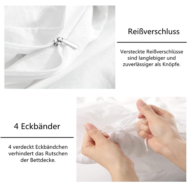 • Practical Features The well-made zipper uses a hidden design and works smoothly, so it can be easily removed and cleaned. And 4 concealed corner ties prevent the duvet from slipping. The beautiful cotton bed linen is available in a wide range of colours and fits perfectly in bedrooms with different interior styles.