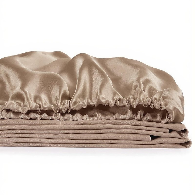 - Glossy Taupe Satin Fitted Sheet: Our high thread count fitted sheet made of high quality satin fabric,which made the single bed fitted sheet smooth cooling glossy and soft. Feeling like pure silk but more durable and easy care than silk.The satin mattress protector cover provide a soft and smooth texture that protect your skin against the facial sleep lines and prevents or reduce your beautiful hair from friction,entanglement and knotting.