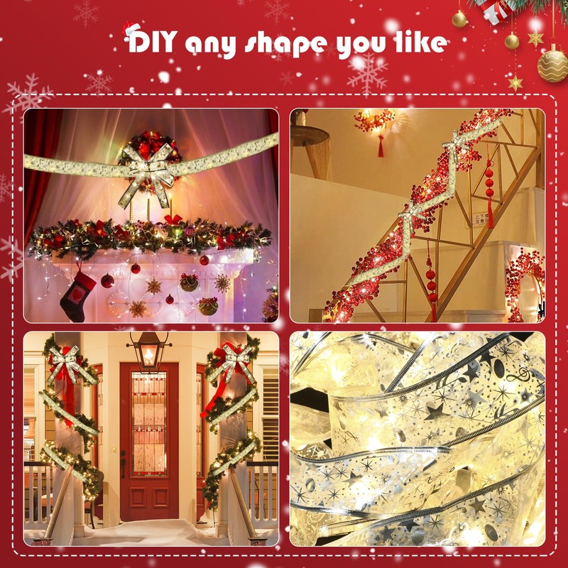 - Exquisite Christmas Decorative: The Christmas tree ribbon lights are an innovative decoration, if you use them to decorate your Christmas trees, garden, yards, rooms, fireplace, and parties, they will provide an amazing lighting effect, bringing you a strong feel of the festival, romantic and exquisite.
